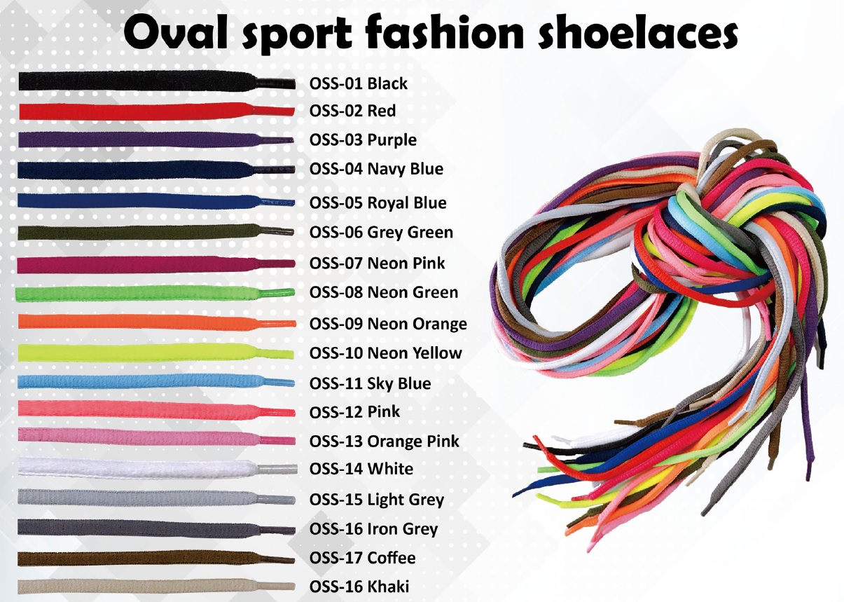 多樣設計:翔錦有限公司提供各種球類運動專用多色橢圓鞋帶組的多樣化設計,可設計不同圖案