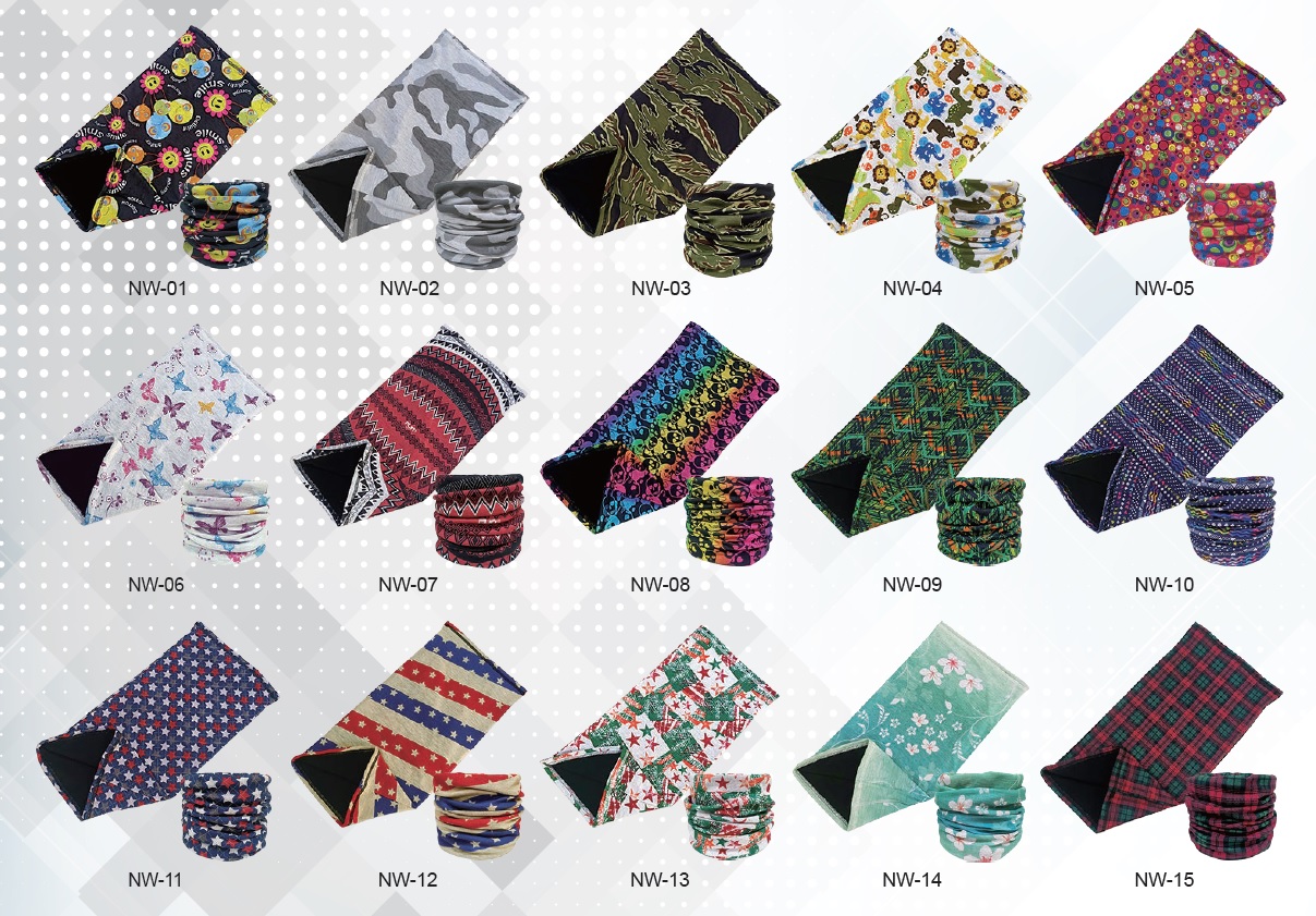 多樣設計:翔錦有限公司提供小朋友兒童內裡加絨抗菌頸套頭巾的多樣化設計,請來稿AI檔