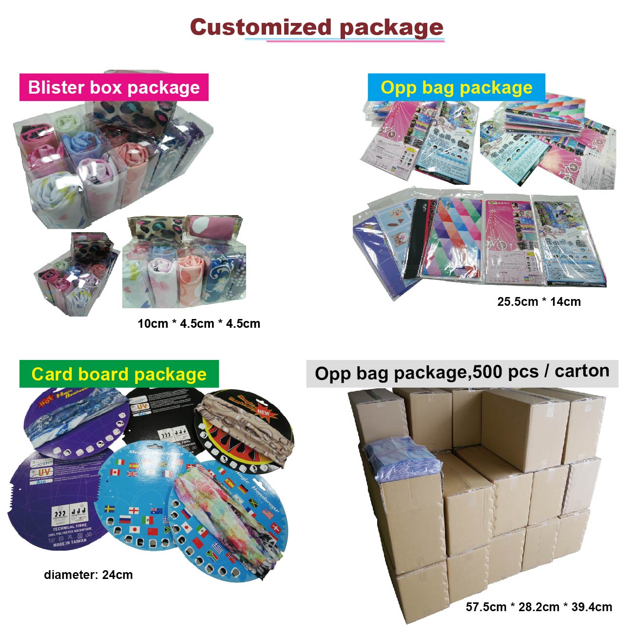 包裝客製化,凡舉吊卡/紙卡設計到入袋皆可客製。 ◆ 多功能用途: 具防風、保暖、防曬、吸汗、透氣、速乾、柔軟、抗UV 。
