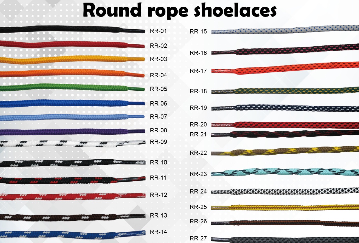 多樣設計:翔錦有限公司提供經典特多圓繩登山健行鞋帶的多樣化設計,可設計不同圖案